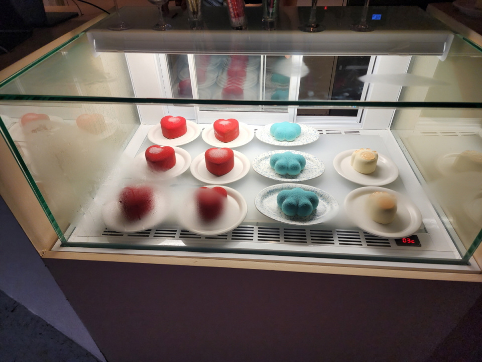 オシャレ過ぎて、ゆっくりお茶できそうもありません(笑)ケーキのケースも装飾品のようですね。