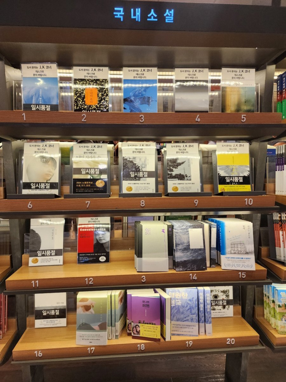 韓国小説TOP20の中でハン・ガン作家の小説が1~12、16、20位ですが、全部売り切れの状態です><私もまだハン・ガン作家の本を読んだことがないですが、本を手に入れるまで時間がかかりそうです;