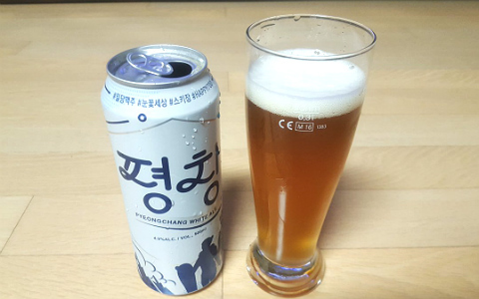 | 地域の名前を取り入れたビールが増えている中、ついに平昌(ピョンチャン)も登場しました!気になって買ってみると…!ビールの色が結構濃い目。味も濃い方で、地域名ビールの中で一番濃い気がします! | ![]() |
