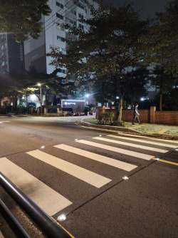 最近、横断歩道に誘導灯の設置が増えています!瑞草(ソチョ)区の住宅街の横断歩道に誘導灯があってなんだか安心し・・・
