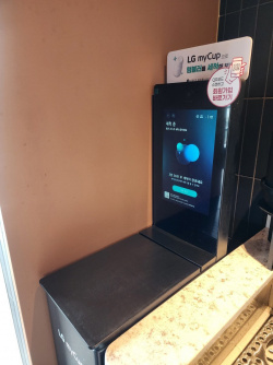 スタバのタンブラー洗浄機がアップグレードされました! 蓋を開けてタンブラーと蓋を入れ、蓋をして、・・・