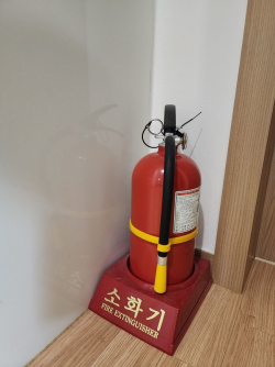 マンションでは、世帯別に消火器が必須です!消火器の使用期限は10年だそうで、先日交替しました!火の用心は大事・・・
