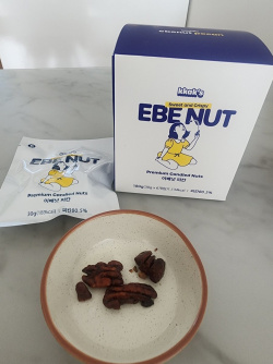 最近、お気に入りのおやつ(30g*6個入り18,000ウォン)です!ピーカン、胡桃、アーモンドを砂糖でコーテ・・・